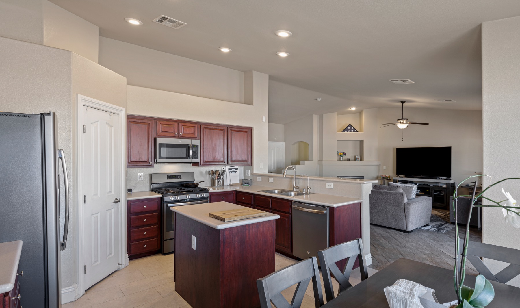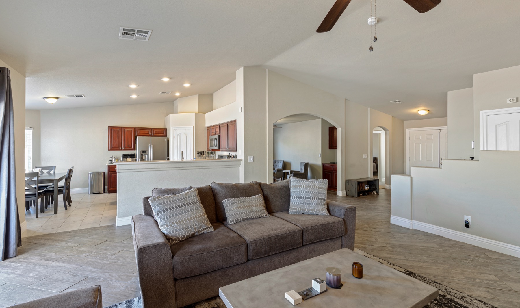 Enjoy the Lovely Vaulted Ceilings in Entry, Living Room, Kitchen, and the Primary Bedroom.