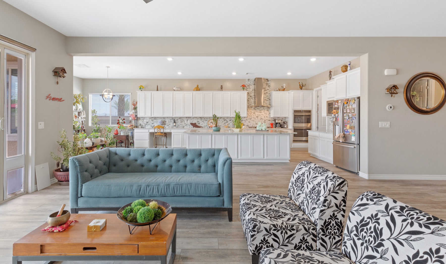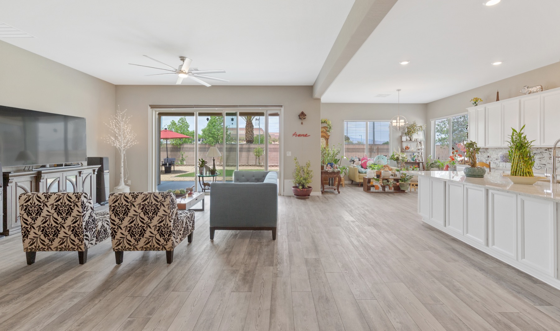 Enjoy a gorgeous triple panel slider right off of your living room, breakfast nook, and kitchen
