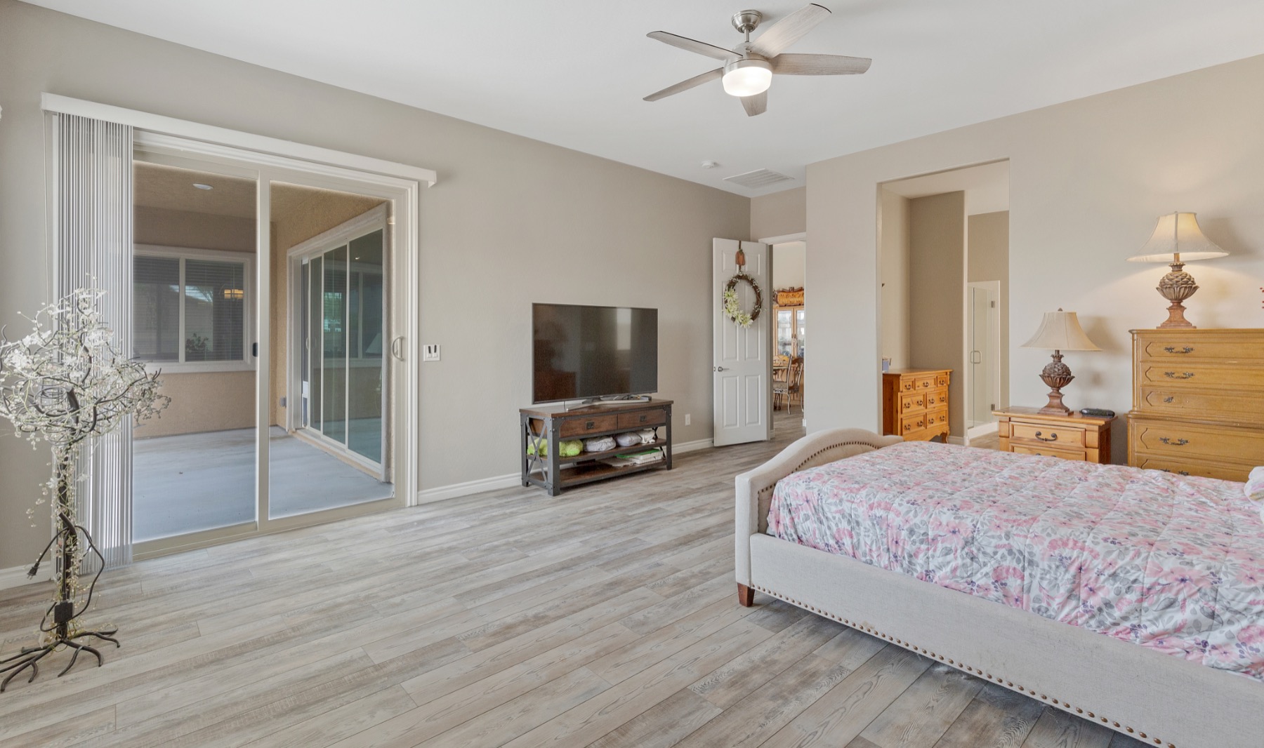 Enjoy a slider that leads out to the covered patio/backyard from the large primary bedroom.