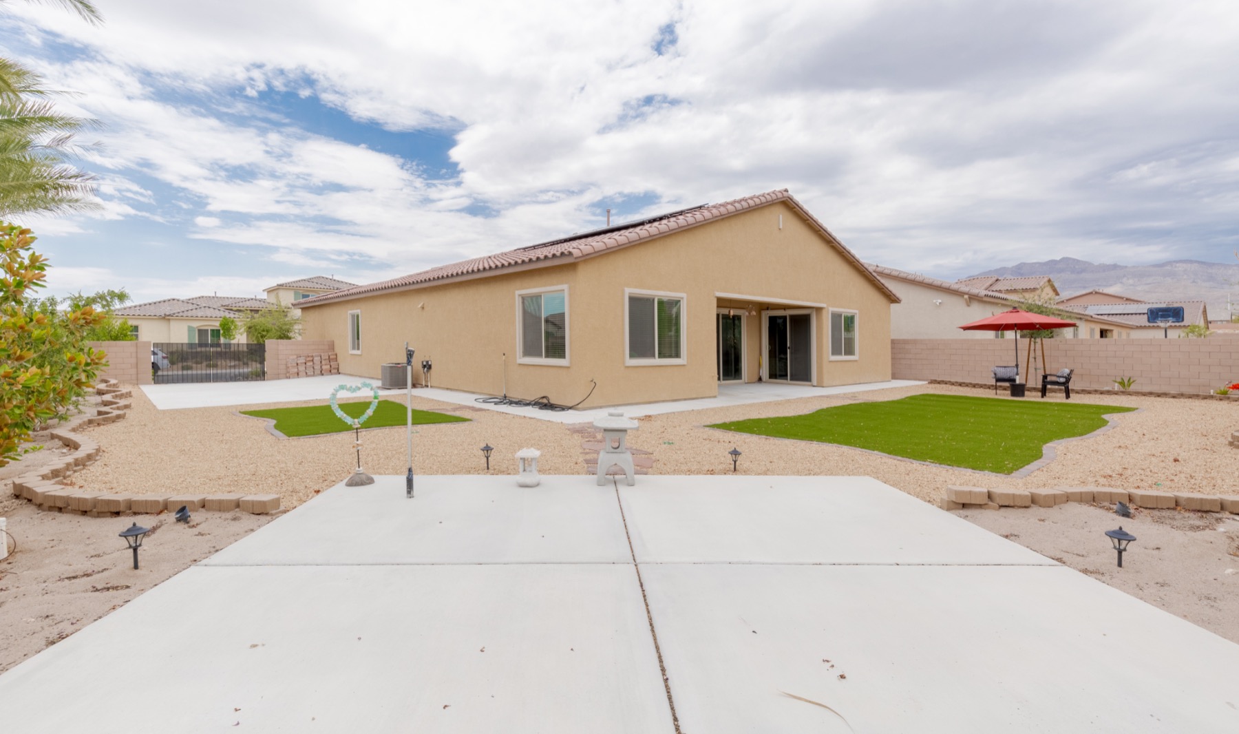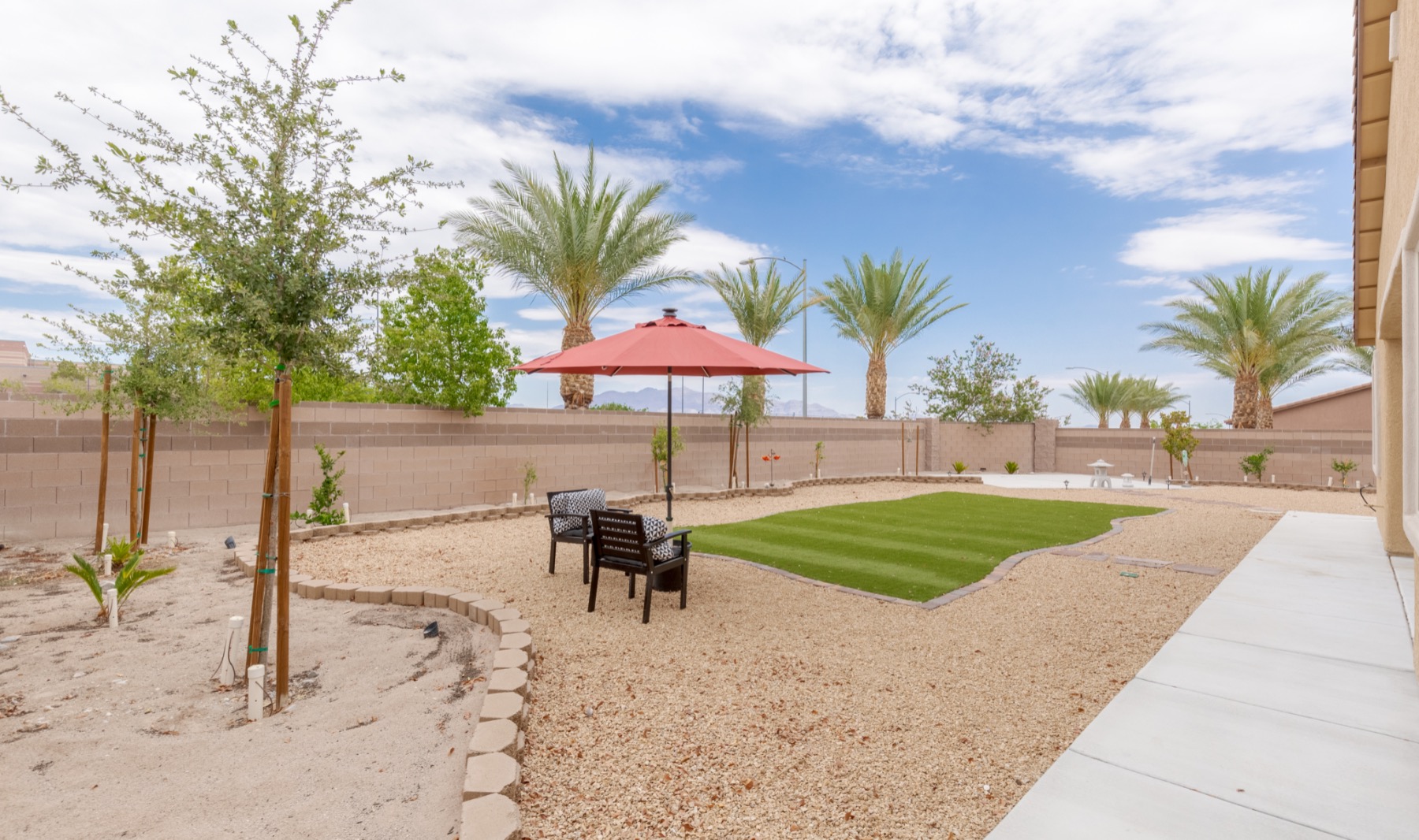 Enjoy having no rear neighbor or neighbor to your right. Large backyard with covered patio, turf, fruit trees, RV Parking, and is large enough to fit a pool if desired.