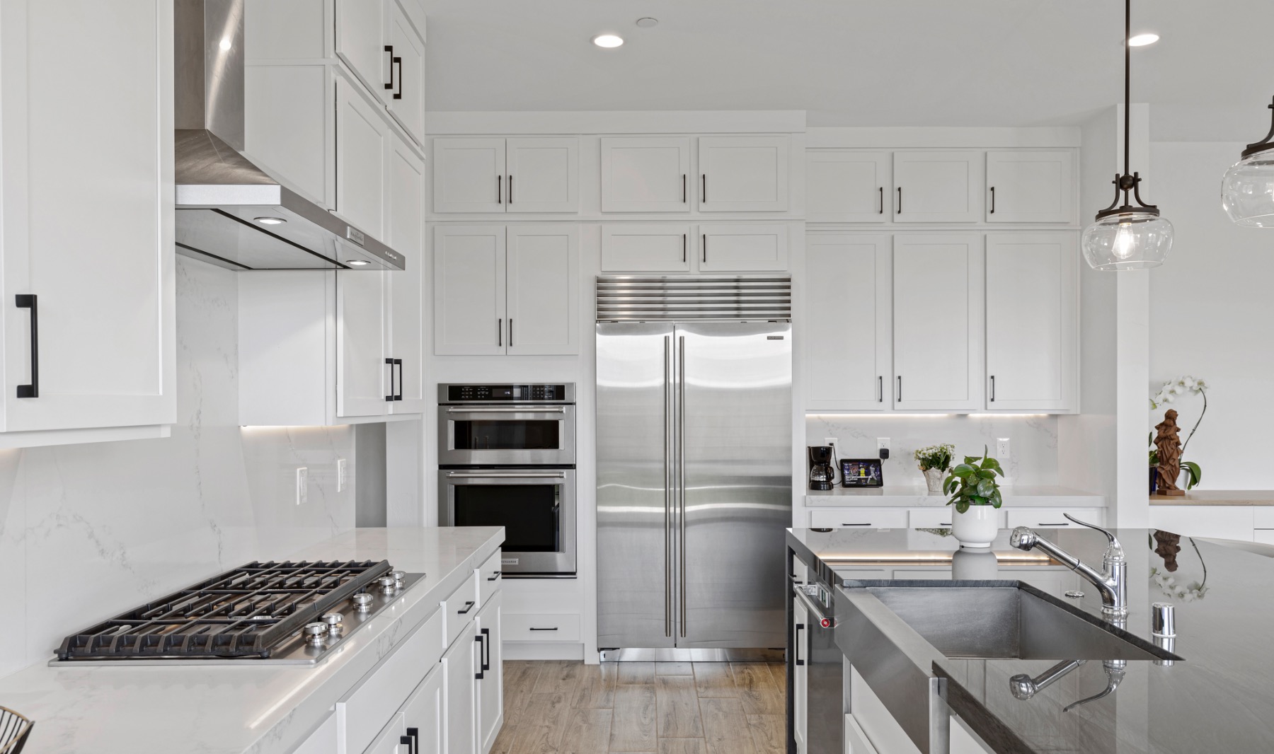 Welcome Home to this Skye Canyon Stunner by Toll Brothers! Better than New & Situated on a Corner Lot is this Incredibly Gorgeous Home with a Stunning Modern Farmhouse Exterior! This Exceptional Property Boasts 5 bedrooms, a Den, a Loft, & A Polyurea Coated (Stronger than Epoxy) 3 Car Garage! Some Impressive Features include: 10 ft Ceilings Downstairs, 9 ft Upstairs, 8 ft Doors Throughout, Seamless Tile & Luxury Vinyl Plank (No Transition Pieces) Throughout the Whole Home, NO Carpet, Hand Trowel Finished Walls, Not 1, But 2 Three-Panel Sliding Glass Doors Leading out to the Backyard, Waterfall Quartzite Kitchen Island, Quartz Countertops also used as Backsplash to the Ceiling, 42 Inch Kitchen Cabinets with Uppers & Under Cabinet Lighting, Subzero Refrigerator, Stainless Steel KitchenAid Appliances, Modern Stair Railing, All Glass Luxury Shower in the Primary Bath, & Gorgeous Black Tile Surrounding The Contemporary Fireplace. Also, enjoy all the amazing amenities that Skye Canyon has to offer from the Pool, Spa, Splash Pads, BBQ Patio, Fitness Center, Aspire Coffee House, Parks and Trails Throughout, Roaming Security, and Skye Canyon Marketplace with Groceries, Stores, and Dining Options! Don't Miss Out On The Opportunity To Own This Highly Upgraded Gem!